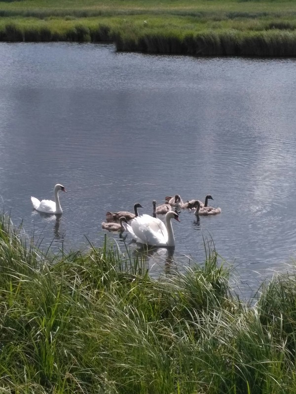 Впервые увидел лебедей так близко, да ещё и с выводком