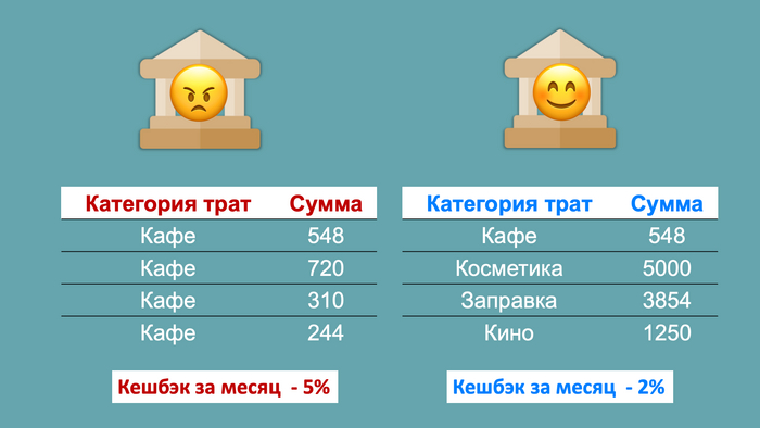 Самые продвинутые из вас скажут, что можно схитрить – заказать разные карты в разных банках и оплачивать ими покупки в разных магазинах. Но банку это вряд ли понравится. Он рассчитывает, что бОльшая доля трансакций по карте будет приходиться на категории с минимальным кэшбэком.