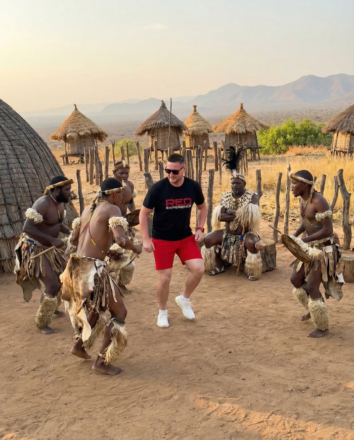 Так что да, я выиграл ящик пива. Но в придачу получил боевую раскраску, мастер-класс по владению копьем, тонну браслетов и уважение от целого племени зулусов.