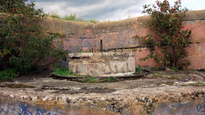Уходя в 2002 году, военные забрали все, что представляло ценность, остальное разграбили. Однако основа сохранилась и можно додумать что и как здесь было устроено. Например фундамент 9-дюймовой мортиры.