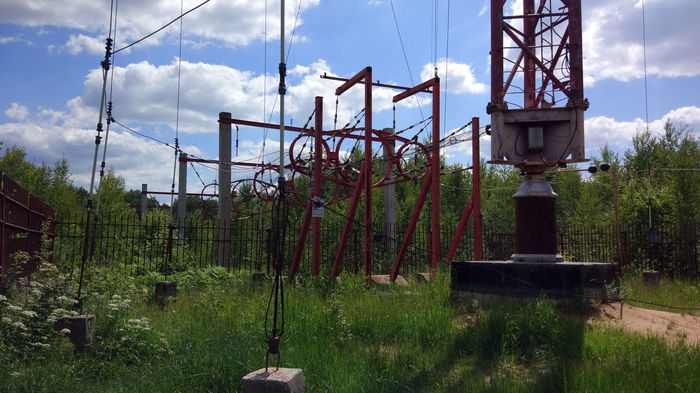 С другой стороны ситуация кардинально меняется. Радиоцентр окружают дачи и речка. Оставив машину недалеко от них - дальше просто не проехать нам - выдвигаемся к главной мачте. Продвигаемся вдоль реки, попутно отбиваясь от насекомых. Антенна остается в стороне, а удобной дороги к ней так и не видно (впрочем на что тут рассчитывать - на удобную подъездную трассу для любителей заброшек?))) Все таки проходная тропа выводит к следующему поселку, откуда уже видна маленькая тропинка в сторону антенны. Впечатление что используется она для сбора ягод и грибов. Снова идем параллельно реке и снова нет тропинки к мачте.