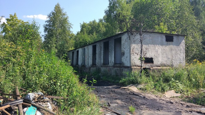 Дойдя до конца искусственной насыпи, наконец-то поднимаемся наверх. Теперь появляется возможность оценить вид, однако в глаза больше бросается разрушенное отдельно стоящее здание.