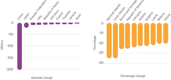 Особенно катастрофически пустеет север России – в 1990 году в Магаданской области проживало 390 тысяч человек, а в 2024 году там осталось всего 133 387 человек. В области появилось множество заброшенных посёлков. Столь же плачевная ситуация и в Мурманской области – в 1990 году там проживало 1,19 миллиона человек, а в 2024 году уже 656 438 человек.