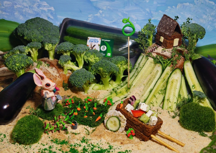 Еще одна боль) Овощная долина… А это мой кухонный стол. Это была жесть ребята… Горы из хлеба, песок- панировочные сухари. Тут все съедобное, кроме кролика (тоже кстати сама в детстве его липила)
