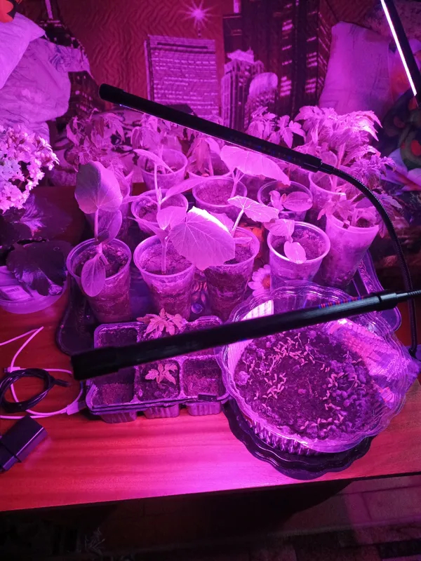 В общем, если и берёте такие светильники, выбирайте только белые и дешёвые - если разочаруетесь в их силе, то хотя бы сможете использовать как настольный свет (но имейте в виду, они мерцают). И трактуйте их не более чем лёгкая подсветка для пары кактусов или черенков герани на подоконнике. Насчёт внятного кол-ва рассады с ними - не мечтайте.