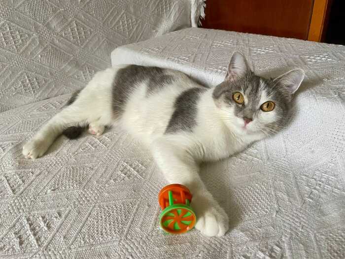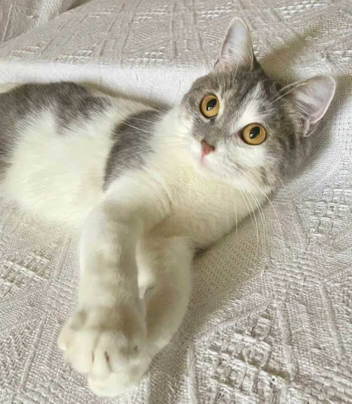Как она оказалась на улице, неизвестно, но видно, что раньше была домашней: полностью зависит от человека, очень привязана к людям и любит людей всей кошечкой.