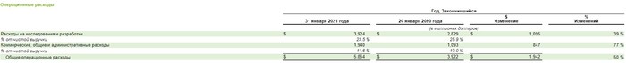 Расходы на исследования и разработки выросли на 39% в 2021 финансовом году по сравнению с 2020 финансовым годом, в основном за счет приобретения Mellanox. Кроме того, увеличение отражает компенсацию работникам и связанные с этим расходы, включая компенсацию на основе запасов и расходы на инфраструктуру.