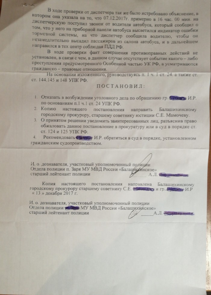 После прочтения, я уже сидел на углях от горячего пукана... Требовать уголовного преследования на водителя, который якобы высадил пассажиров по своей прихоти.