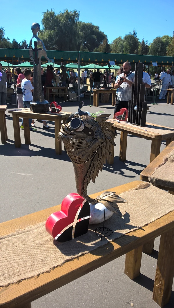 Идем с собакой дальше. Перед нами статуя смурфа-кентавра. Полуконь-полусмурф.