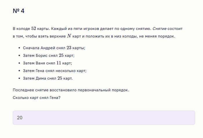 Вообще я не очень люблю выражение «высшая математика». Это что же выходит – что вся остальная математика, прежде всего школьная – «низшая»? Второго сорта? Чепуха! В любой науке бывают разные задачи – как простые, так и сложные. А из-за слова «высшая» некоторые старшеклассники и студенты любят задирать нос. Вот, дескать, какую мы сложную науку осваиваем! Хотя на самом деле не могут справиться с обычными школьными задачками по арифметике. Так что, если твой старший брат будет задирать нос – подсунь ему такую вот арифметическую (то есть совсем не «высшую») задачку, пускай помучается:
