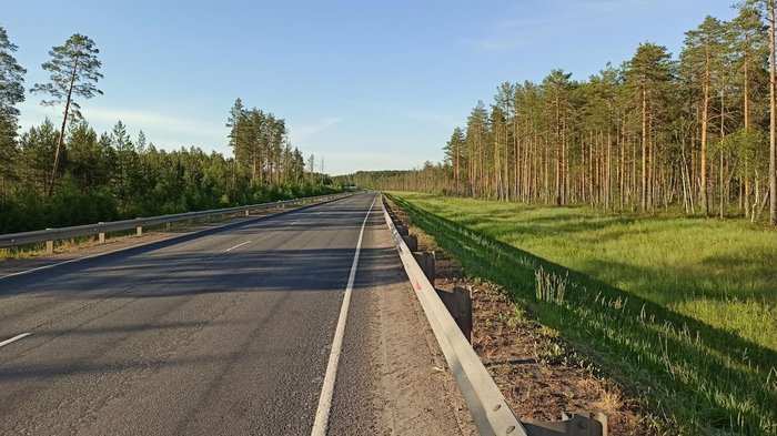 После Вытегры основной поток транспорта уходит налево в Санкт-Петербург, мы едем дальше вверх, на север, в сторону Медвежьегорска.