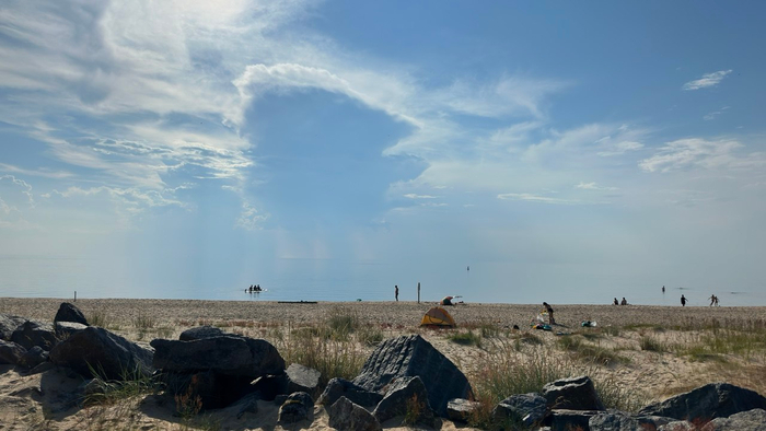 Сразу даёт о себе знать встречный ветер. Ну и пусть дует, поедем медленнее, но хотя бы не сваримся от пекла. Сделав по дороге дополнительную остановку для погружения раскалённых тел в прохладную воду, доезжаем до Вытегры.