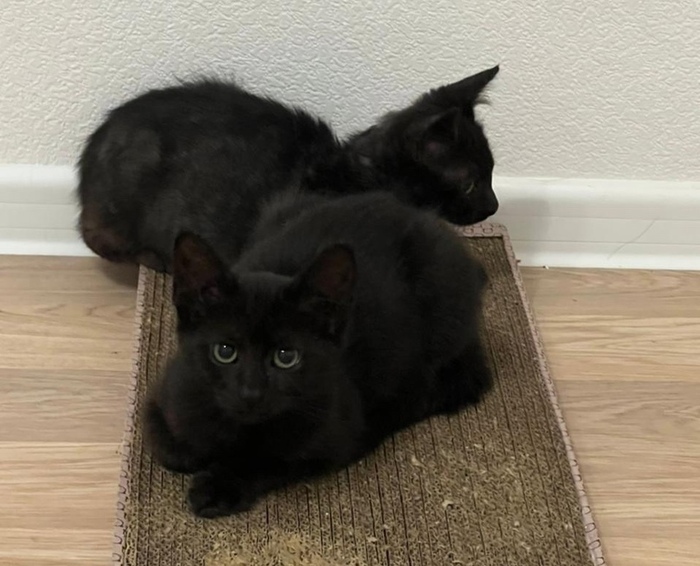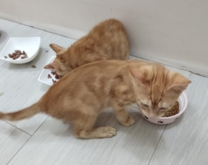 Котятам сейчас около 3 - 3,5 месяцев - они здоровы, обработаны от паразитов и первый раз привиты. Малыши понятливые и умненькие - прямо с начала пребывания на передержке все пошли в лоток, вовсю осваивают когтеточку.