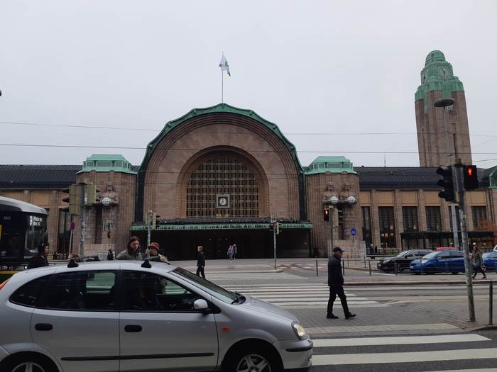 Через какое-то время мы прибыли к центральному вокзалу столицы Финляндии, монументальному зданию, которое мне показалось очень суровым. (На фото выше)