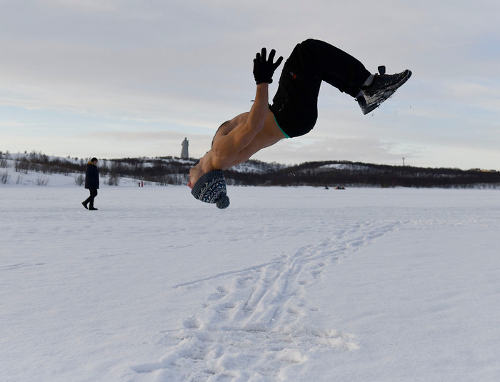 На одном из холмов организаторами фестиваля был устроен склон протяженностью приблизительно 300м. Народ активно катался на лыжах и досках, фоткался в пляжных костюмах и карнавальных нарядах, а в конце трассы катальщиков ждал бассейн. Дамы позировали, кто в купальниках на лыжах, кто в бикини на сноубордах, а кто и просто босиком на снегу. Правда снег под конец был довольно грязный и быстро таял на слепящем солнце. Тем не менее, несмотря на пекло и разгоряченные тела нещадно топтавшие бедные сугробы, трасса толщиной полметра с трудом, но продержалась до конца дня.