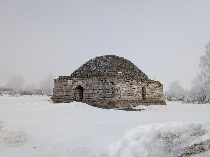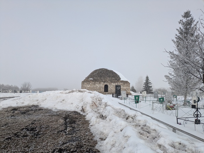 Старинное кладбище, где стоит один из старейших памятников архитектуры Башкирии (XIV век). Место с мощной историей и энергетикой. Посмотрели на древние плиты — масштаб времени чувствуется сразу.