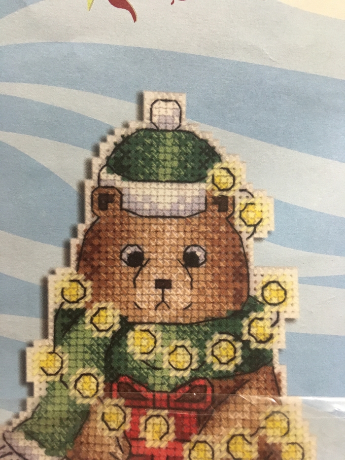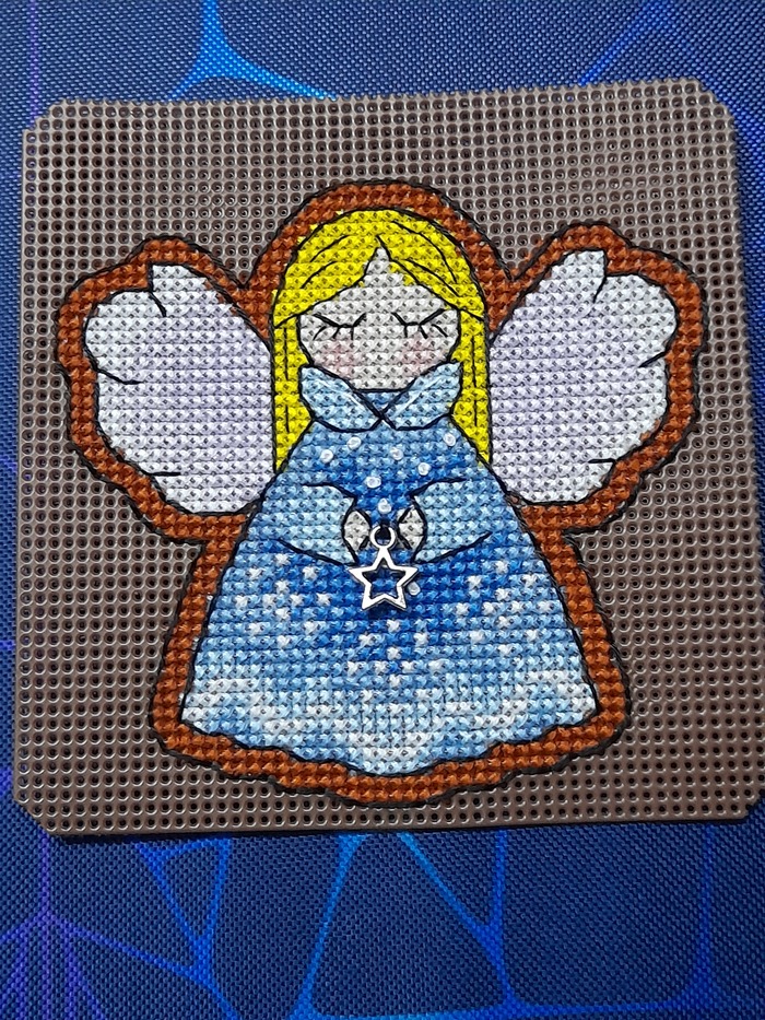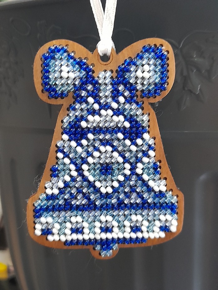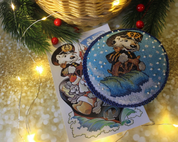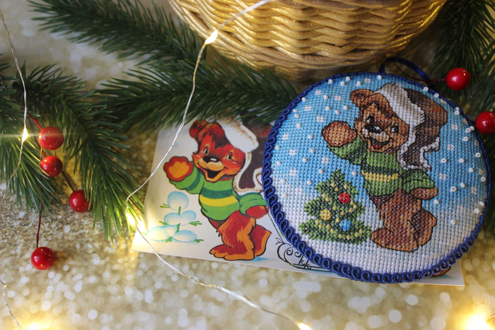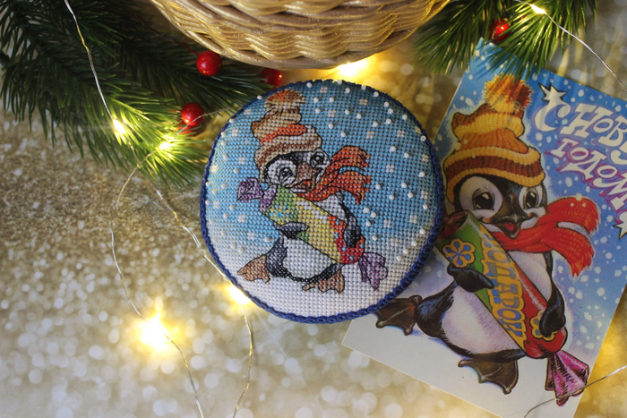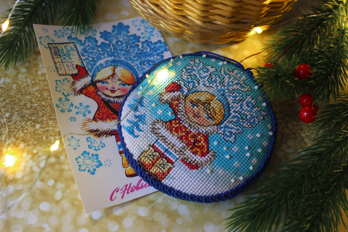 Набор от МП Студия, вышивка на пластиковой канве. В процессе сломано три иголки, впервые за 5 или 6 вышитых ёлочных игрушек на пластике.