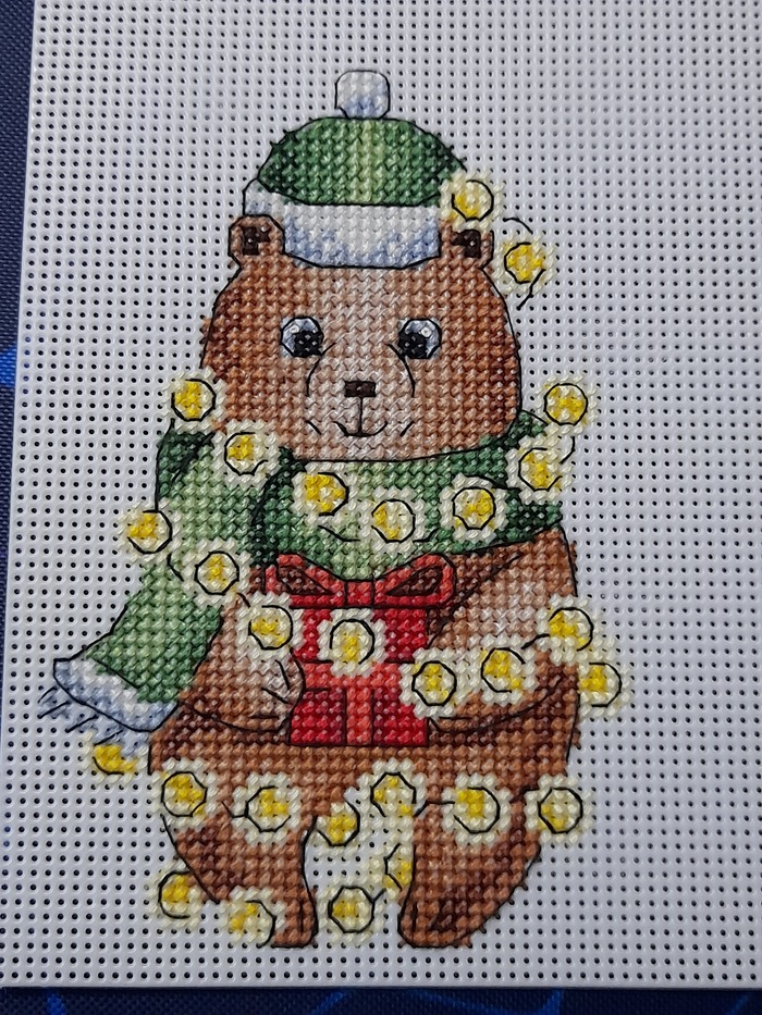 Милый новогодний оленёнок вышивался на одном дыхании, даже не сломала ни одной иголки))