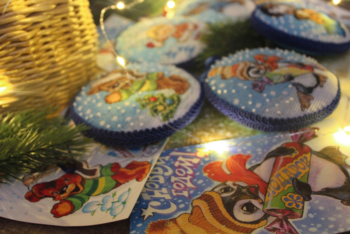 И это вторая половина моих ёлочных игрушек по мотивам этих чудесных открыток.