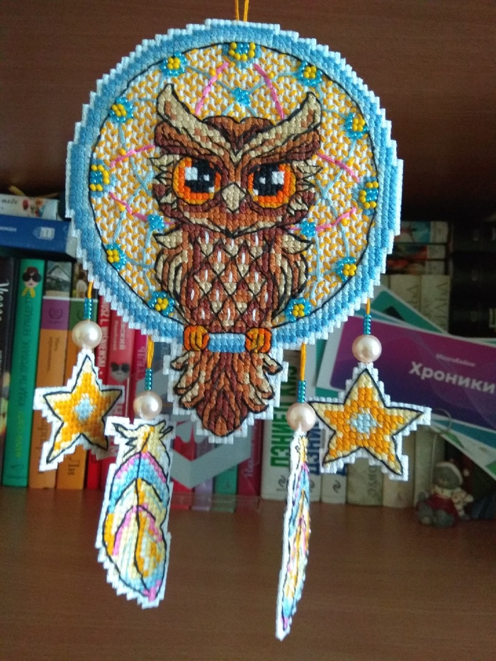 Ловец снов - индейский амулет, защищающий спящего от злых духов и болезней. По легендам, плохие сны должны запутываться в паутинке, а хорошие проскальзывать сквозь отверстие посередине. Исторически ловцы снов изготавливали из суровых ниток и оленьих жил, натянутых на кольцо из ивовых веток.