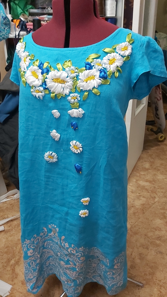 Немного напишу и о тонировке. Чаще всего я одновременно и пропитываю и тонирую. Акриловые краски по ткани очень хорошо подходят для тонировки лент.Вот в качестве примера две последние фотографии: как было и как стало. Вышивка была начата сразу, в тонах, которые были в наличии -розовый и бордо.) И лишь потом, было высказано пожелание, чтоб были оттенки сиреневые и фиолетовые) Начинать новую вышивку было уже поздно, поэтому была использована тонировка)