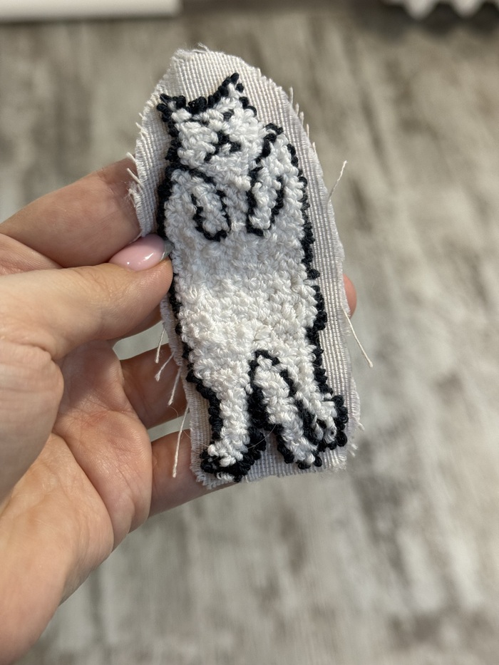 Одного коврика мне показалось мало, я решила добавить откормленного на деревенской сметанке кота. Изначально его думала тоже связать, но мне хотелось другой фактуры, мягкости, что ли. И я вспомнила, что давно хотела попробовать себя в ковровой вышивке. Заказала специальную иглу с тканью иииииии