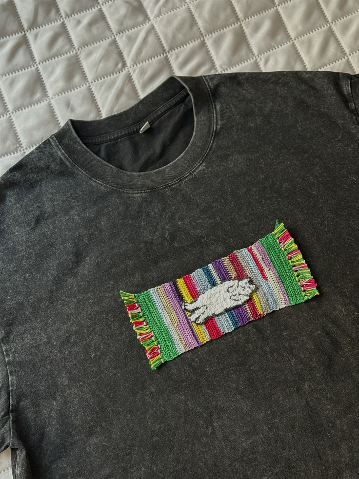 Пришила котика на половик, половик на футболку ну и все на этом, результат вы уже видели.