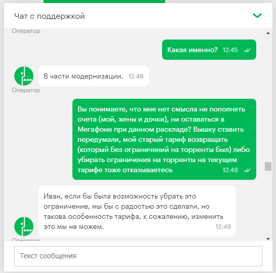 В общем, решил, что нет смысла выкладывать остальную переписку, суть и так ясна - Мегафон обосрался и не выполнил обещание ни на грамм.