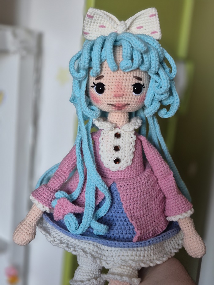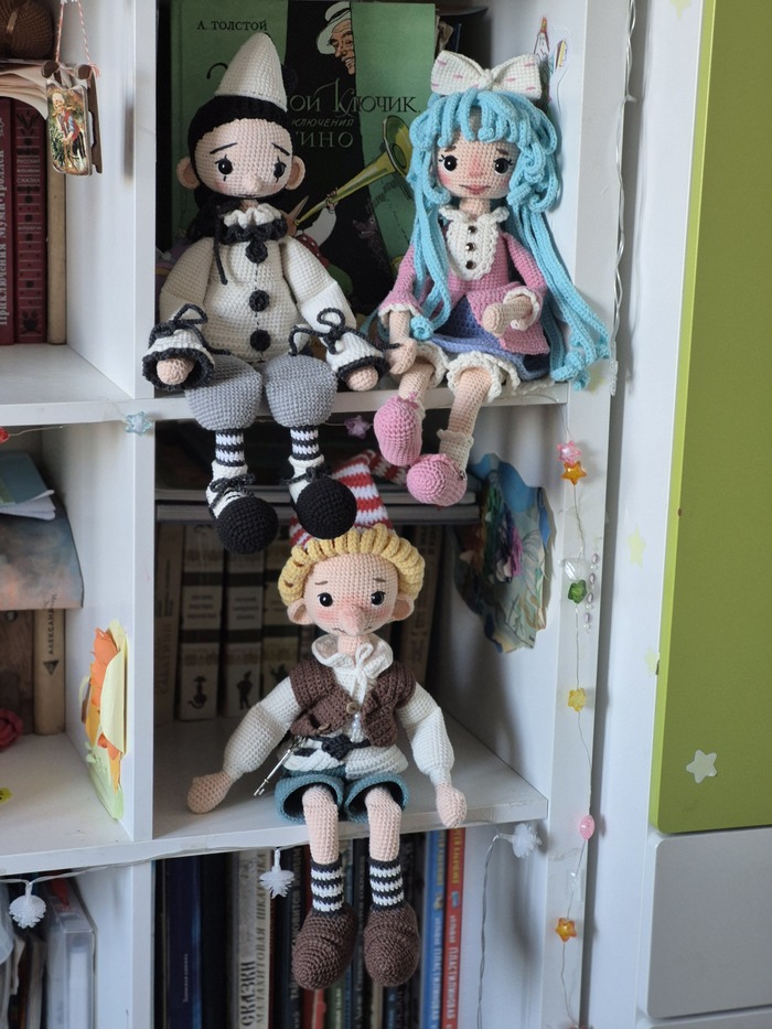Привет всему творческому, рукастому и рукодельному Пикабу. Я уже выкладывала пост про связанного крючком Буратино и пост про Пьеро. И теперь я закончила Мальвину. Вот такая получилась девочка. Надо еще совсем немного довести до ума и будет совсем хорошо.