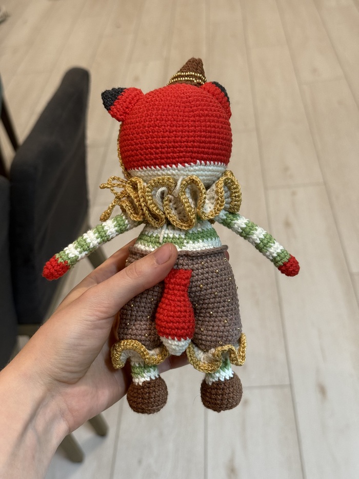 Нить заказывала на вайлдберрис. Только вот качество нити подвело. В середине вязания тройная нитка внезапно стала двойной. И непонятно было, вернётся ли прежняя толщина или нет. Вернулась. Но не очень меня это порадовало.