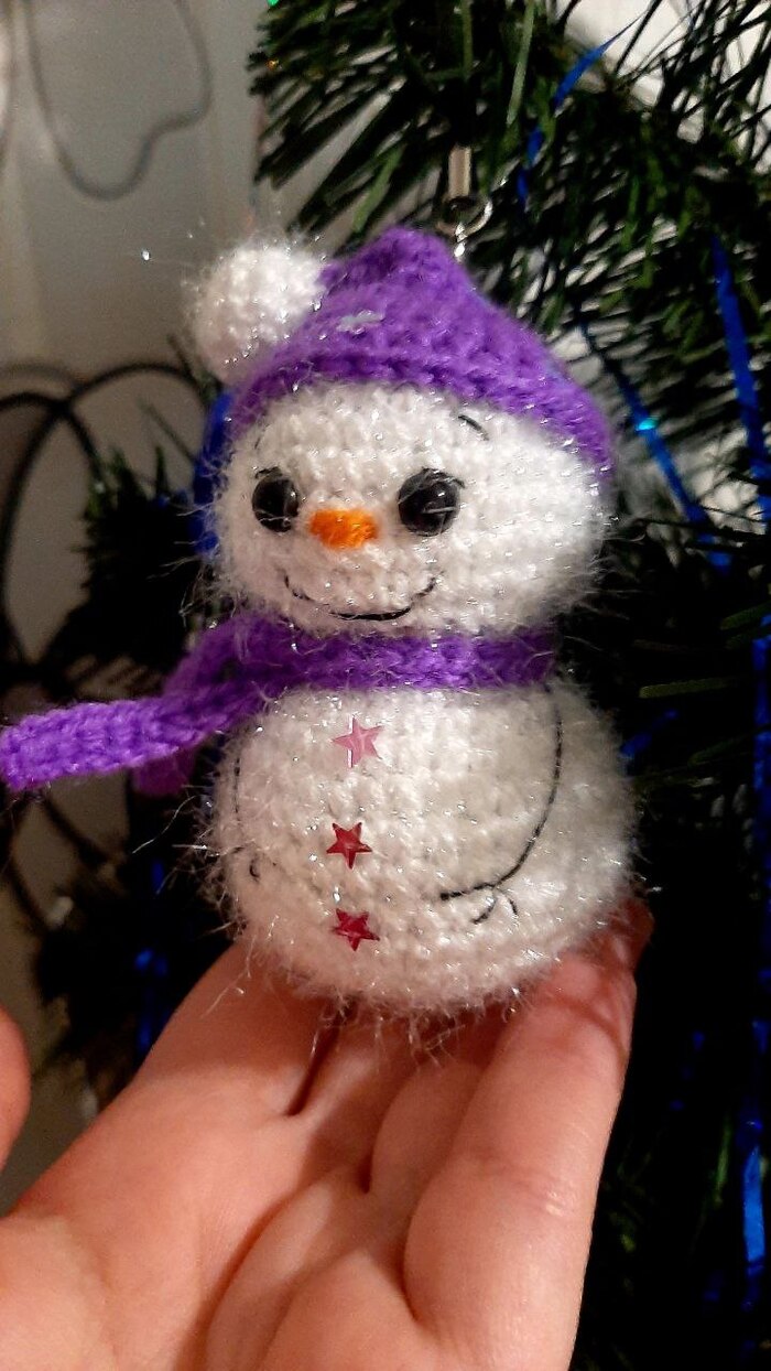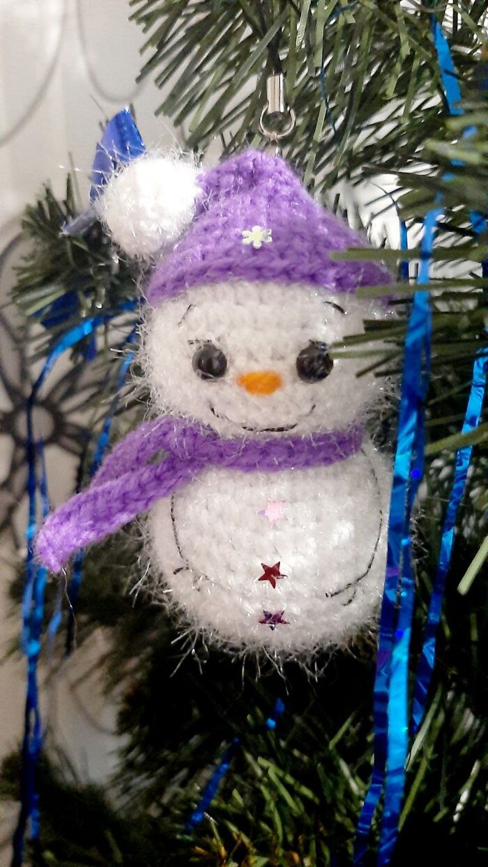 Вот и готова третья игрушка на ёлочку. Снеговик, отличный вариант ёлочной игрушки. Вязала из акрила и пряжи Yarnart Christmas, мне кажется эта пряжа отлично подходит для таких игрушек.