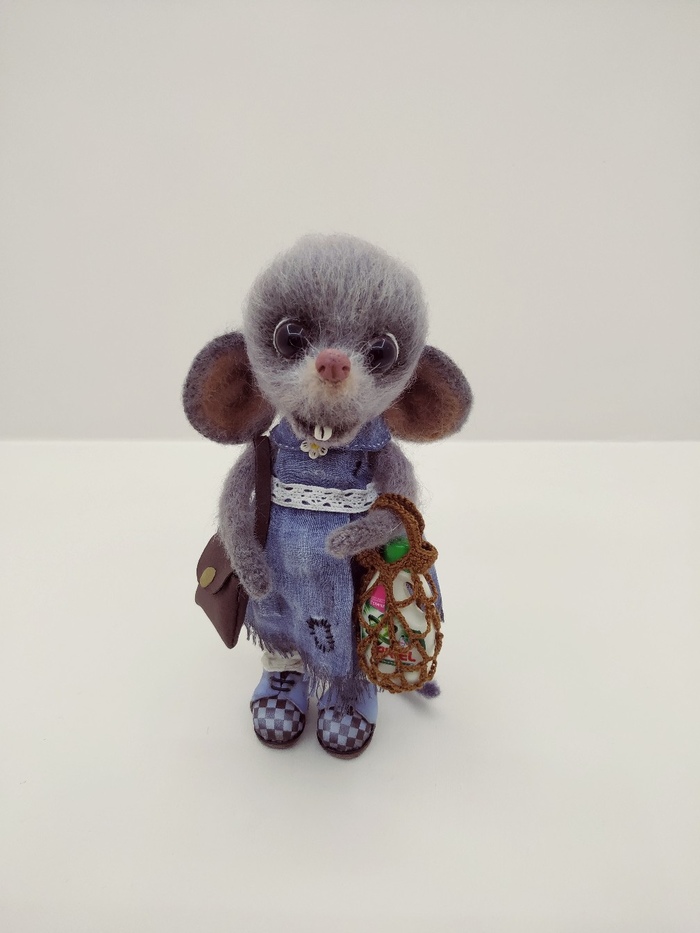 Мышь связан крючком 0.9 clover. Кофта связана спицами 1,5 prym. Тонирован акриловыми красками. Усы из лески, надёжно закреплены. Рост около 12 см.