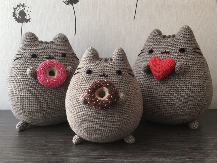 котов связала полностью сама, без описания, вдохновившись популярным персонажем Pusheen.