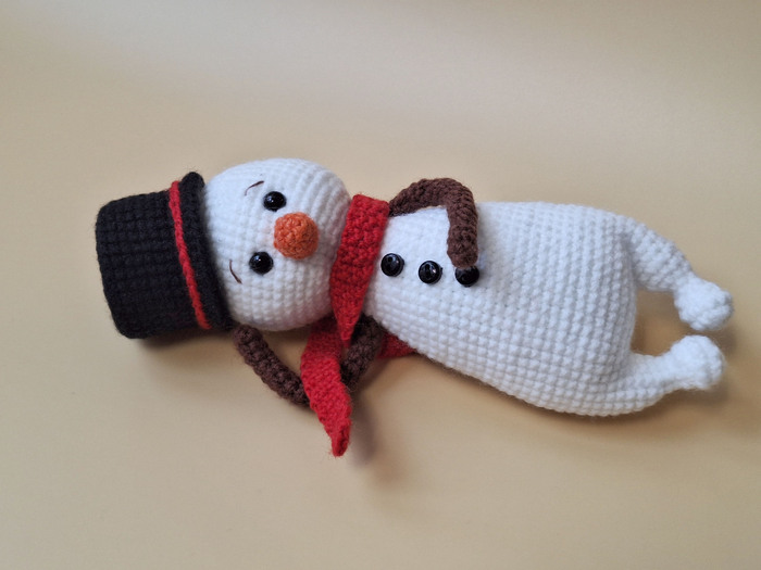 Материалы: Акриловая пряжа белая и чёрная, акрилово-шерстяная красная. Глазки 6 мм на безопасном креплении, чёрные декоративные пуговки. В ручках проволочный каркас. Дно шляпы дополнительно укрепила, чтобы она лучше держала форму.