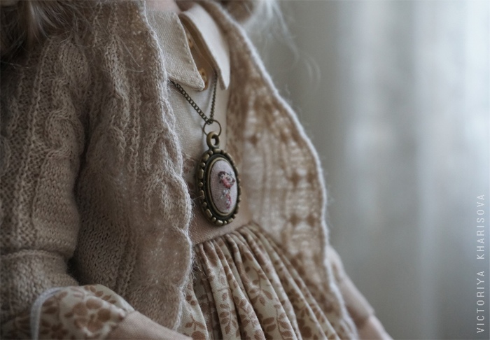 После распаковки был наряжен в удивительно подошедшую по расцветке шапочку с розами, одарен кулончиком на розовой нитке, отфотографирован и размещен в моей виртуальной коллекции.