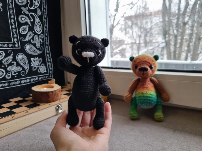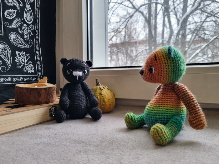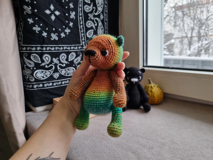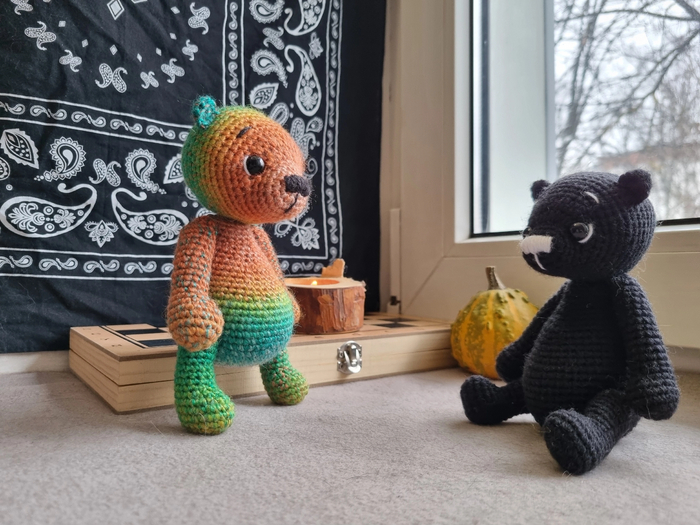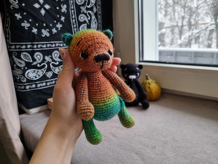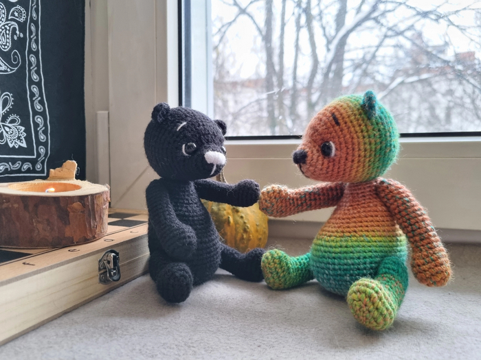 Уже как-то выкладывала пост о Радужном Мишке, но та же женщина попросила связать еще одного для своей подруги.