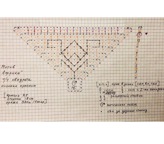 84) уб, 7 сбн, уб, 7 сбн (16) - ставим маркер в последнюю петлю