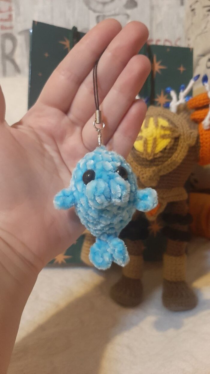 Связала я его за один вечер, из велюровой пряжи, получился он 15 см, я думаю очень даже можно использовать в виде брелока.