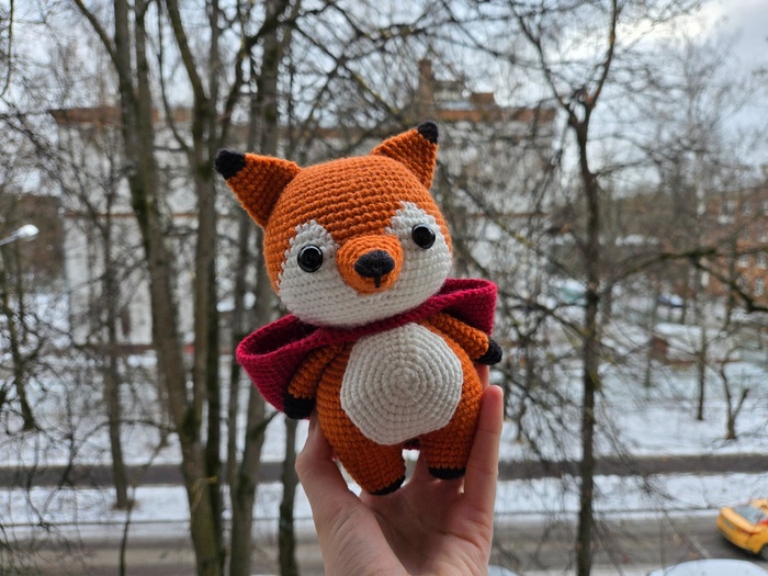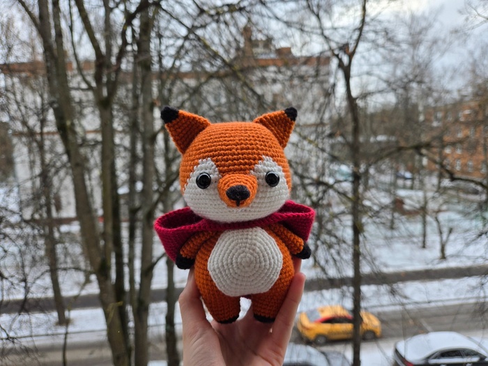 11 февраля мне написал человек с просьбой связать лиса в плаще. Да не в простом плаще, а с капюшоном, и чтобы на плаще красовалась буква F — как у Супермена.