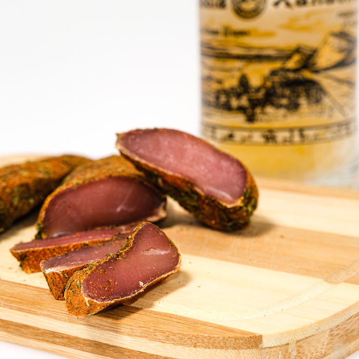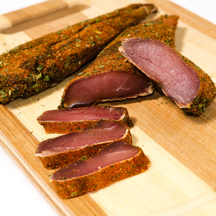 Усушка составила 60% Джерки ещё эластичные но уже на грани, можно уменьшить время сушки при 60°С на час и будет как хорошо провяленное карпаччо)