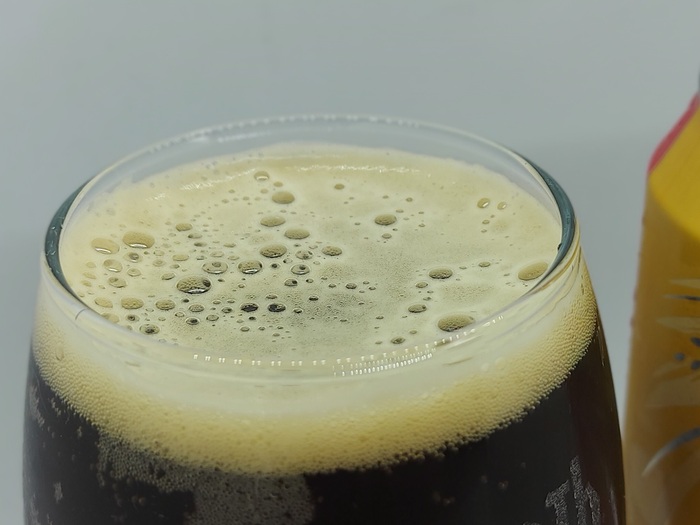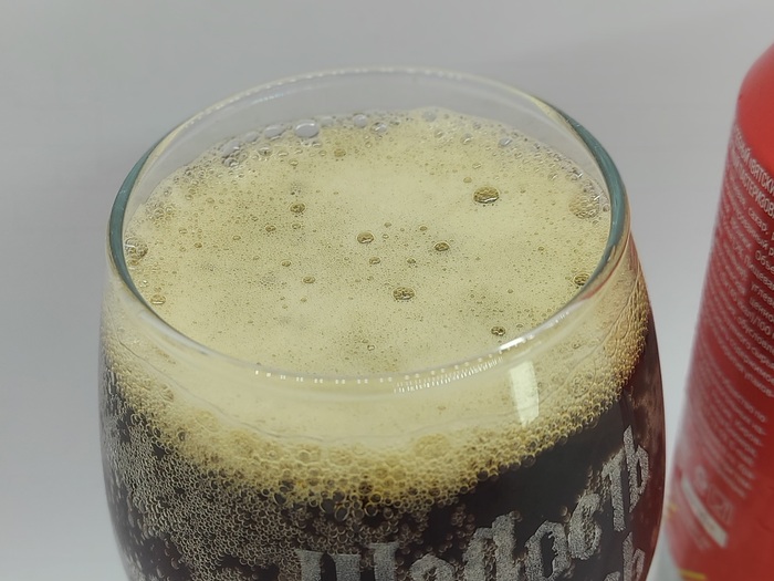 Пена: поначалу представляет собой пышную шапку из крупных и средних пузырьков, но довольно быстро "сдувается" до тонкой плёнки из мелких.