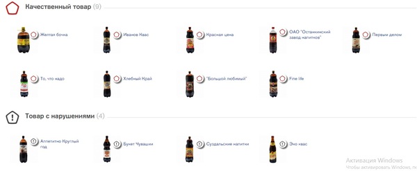 Исключение составил лишь один товар белорусского производства. По результатам испытаний выяснилось, что более половины исследованных торговых марок производят высококачественный квас. Среди них «365 дней», «Бочковой классический», «Волжанка», «Вятский», «Домашний бочонок», «Лидский», «Наша семья», «Нижегородский», «Никола», «О’кей», «Опохмелофф», «Очаковский», «Ржаной бочонок», «Русский дар», «Русский квас», «Семейный секрет» и «Яхонт».