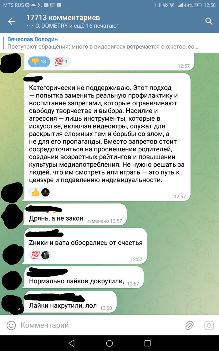 Председатель комитета Госдумы по информационной политике Сергей Боярский ранее в Telegram сообщил, что "вопрос регулирования контента, который транслируется в видеоиграх, безусловно важен и требует особого внимания".