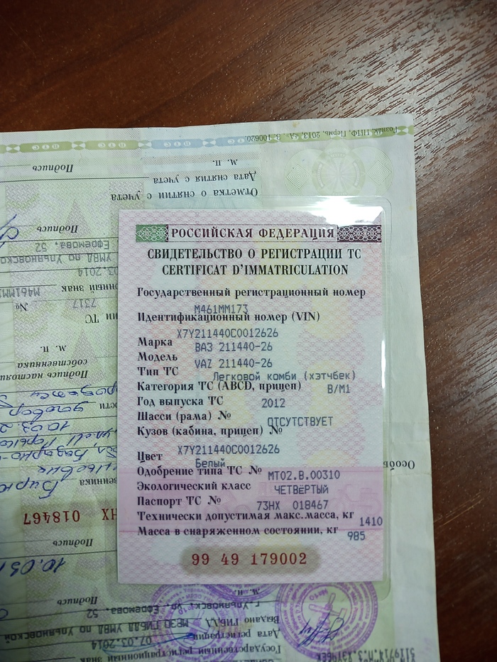Кроме этого нужны действующая диагностическая карта (1200р) и страховка(7653.93р). Автомобиль ВАЗ 2114 2012 г. в. 89 л. с. Часть денег за страховку в связи с продажей автомобиля, по идее, можно вернуть, чем я сейчас и занимаюсь.