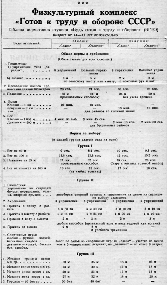 Вот какие были испытания в ГТО в 1946 году для юношей 14-15 лет!