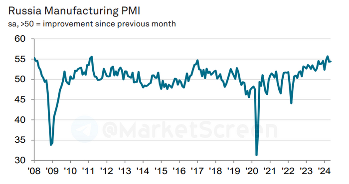 📈 Индекс деловой активности (PMI) в промышленной сфере РФ снова пошёл в рост.