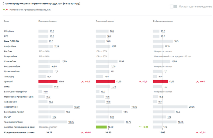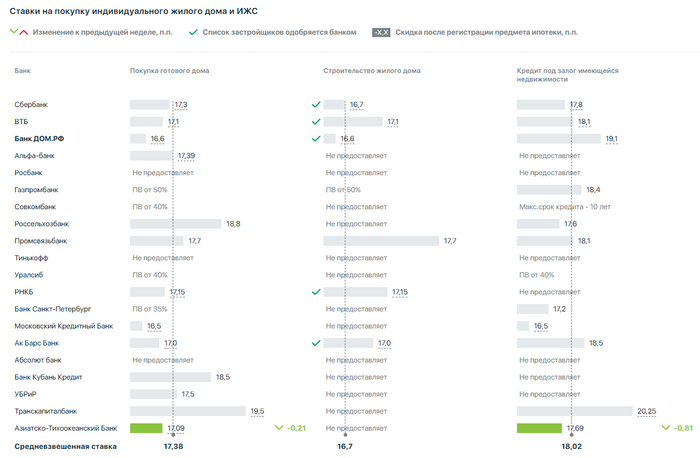 Итак, ставки предложения топ-20 ипотечных банков России за 20.05.2024 - 26.05.2024. Судя по всему, от недели к неделе значения практически не меняются. По рыночным продуктам на первичке имеем средневзвешенную ставку 16,77%, вторичка - 16,95%. ИЖС - 17,38% при покупке готового дома и 16,7% на строительство.