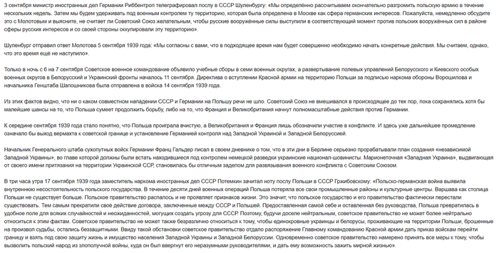Возвращаясь к документу под названием «Пактом Молотова – Риббентропа», многие знают о существовании секретного протокола, который разделял сферы интересов Москвы и Берлина в Европе. Западная Украина и Западная Белоруссия попадали в зону интересов СССР. Однако Кремль в первой половине 1939 года не предпринимал никаких активных действий, хотя немецкие дипломаты с первых дней сентября забрасывали Москву депешами, запрашивая Советский Союз о его планах.