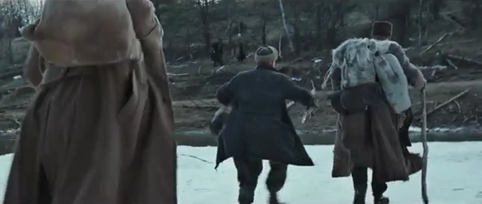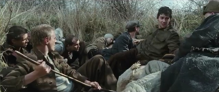 Только Колин Фаррелл занес ножик для удара, собираясь незнакомца прикончить, как Джим его останавливает. Тут же оказывается, что за ними следует девушка, по национальности тоже полячка, которая тоже скрывается от злобных большевиков. Она беглецов давно уже заметила и последовала за ними, потому что ей нужна еда и защита.