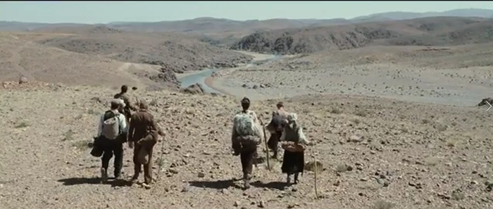 Добрый монгольский мальчик, оставляет беглецам бурдюк с водой, после чего путники продолжают заниматься ходьбой по каменой пустыне.